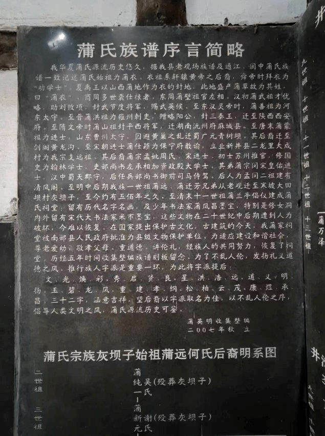蒲氏“尚书祠”展现的不仅是蒲氏的荣耀,还有红色历史记忆。1933年,中共南部地下党负责人蒲善全、蒲良全陪同中央委员廖承志、四川省委书记罗世文,去尚书祠游览参观,他们对此备极称道,在此住了半个多月从事党的地下活动,后去川陕苏区。中华人民共和国成立后,1953年为寒坡乡人民政府所在地,1989年乡人民政府办公迁至寒坡场,此后,祠堂一直闲置未用,祠堂房体历经百年沧桑仍保存完好。