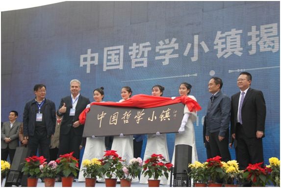 2016年11月13日,中外哲学家为“中国哲学小镇”五凤溪揭牌(图片来源:成都日报)
