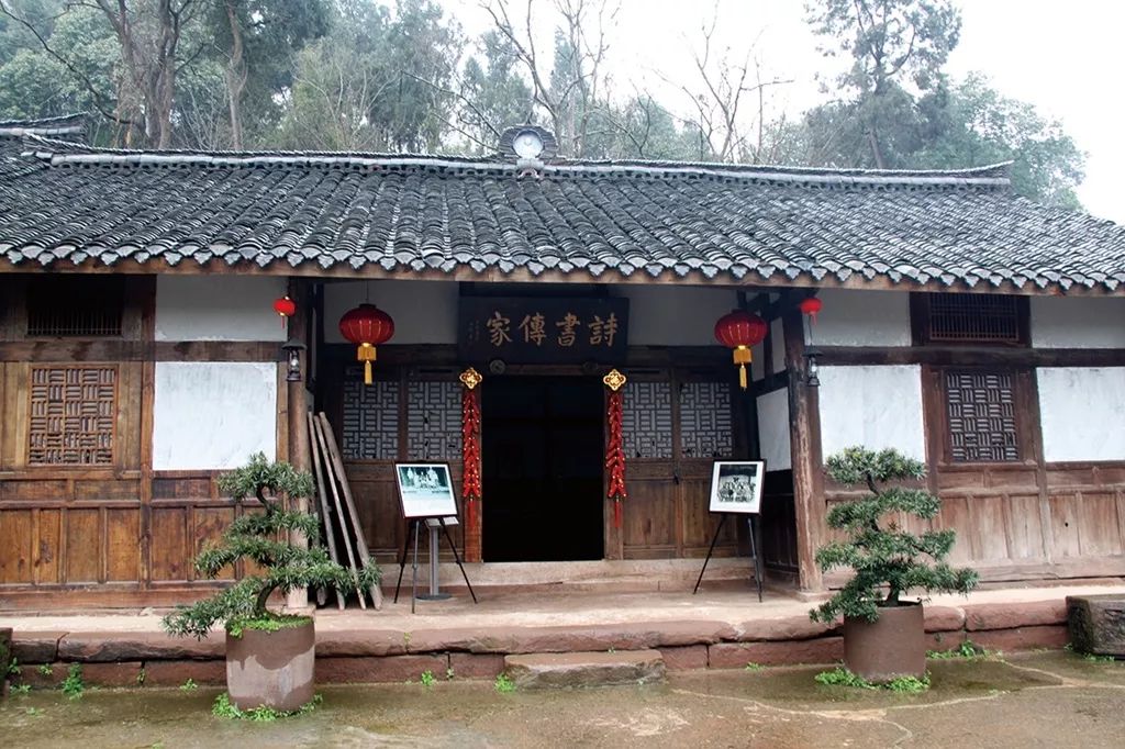 当我走近杨柳沟、走进贺麟故居(金箱村2组),一座二进三重四合大院掩映在“苍柏含烟,翠竹吐雾,绿水环绕,青山拥抱”的青山中。沿着古老的台阶拾级而上,大门上的“心园”古拙、厚重,祖屋门楣上一块“ 诗书传家”的匾额格外醒目。整座建筑占地约20余亩,主次分明,尊卑有序。除居住外,集农、工、商、安保等功能为一体,具有典型的农耕文化特征。