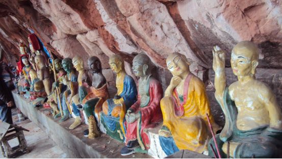 接引寺摩崖造像位于鹿鸣村西北1000米处,别名“漏仓子”,始凿于清乾隆五十八年(1793),清道光五年(1825)及以后又历经增刻。造像共2龛6尊,分布在长、宽各4米,距地表2米的天然石窟右侧石壁之上。