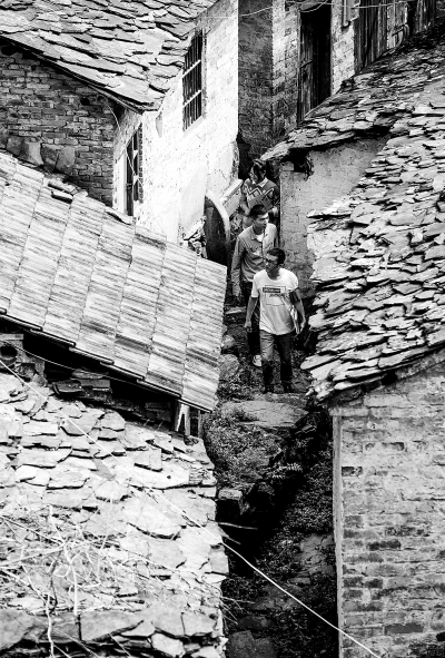 浙江杭州临安区岛石镇“乡村文化保护队”巡查株川自然村的石板屋和石板路。新华社发