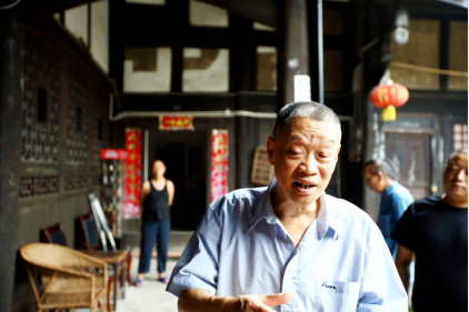 如今姜家大院的主人,是76岁的姜世民老人。姜世民是姜家入川后的第15代传人。他早年因病失明,什么也看不见,院子覆盖了他生活的全部,他也撑起了院子的记忆。老人可以不用拐杖随意走动,院子里的石阶、门槛、楼梯和器物,都成了他身体的一部分,连耗子窸窣翻墙的声音都了然于心。