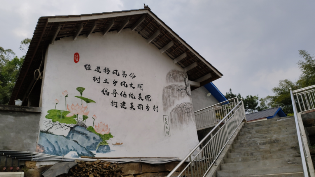 为提升全村生活品质,上游村在2019年还进行了农户民居美化工程,全村不仅见不到陈旧破败的砖瓦房,还修建了造型别致的高档“小洋房”。农户家外墙统一刷白绘制了山水景物画,一幅幅美丽的画卷上墙,一幅幅体现时代气息的大红标语上墙,远远就能看到。