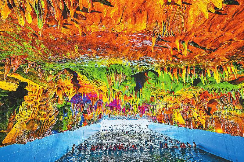 游客在中华洞天溶洞冲浪。
