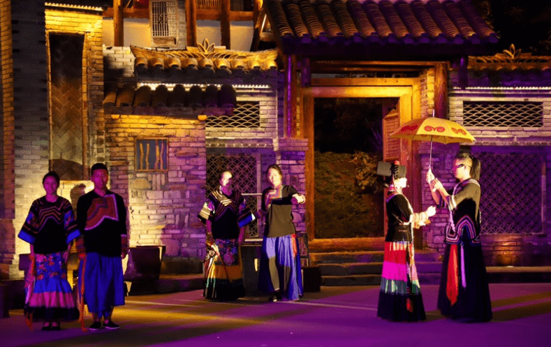 二是突出特色文化。打造“远古呼唤”“一步千年”“走向新生”“燃情岁月”“沐浴春风”“奔向小康”六大篇章,融合彝族独特历法、毕摩文化、古彝文等彝族文化精髓,还原国营照相馆、麻柳湾小卖部、双河铁匠铺等峨边人民熟悉的历史生活场景,凸显凝心聚力脱贫摘帽、接续奋战乡村振兴的奋斗历程,展现彝族群众“一步跨千年”的伟大历史变革,主题层次鲜明,文化氛围浓郁。
