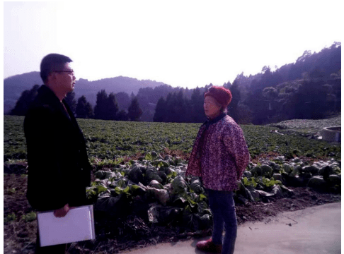我们来到了一大片榨菜地边。一个村民见刘书记到来,热情地迎上来,向我们拉起了家常,介绍起她的勤劳致富经历。