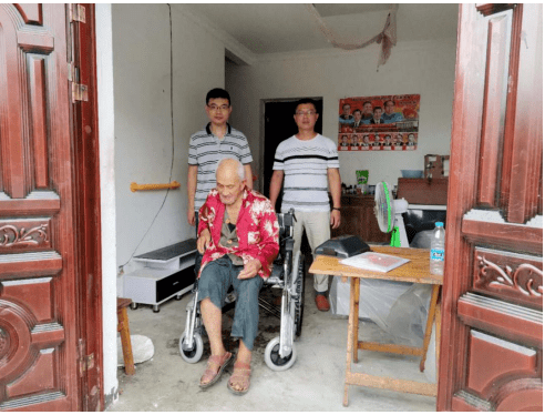 2018年夏天,刘杨为残疾老人赵应全送轮椅(刘杨 供图)