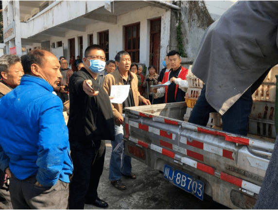帮扶单位就业局为贫困户送鸡苗(刘杨 供图)