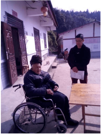 “92了。”老人说他腿有残疾,走不动路,这轮椅是刘书记送的。