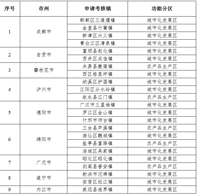 四川省首批“省级百强中心镇”拟命名名单