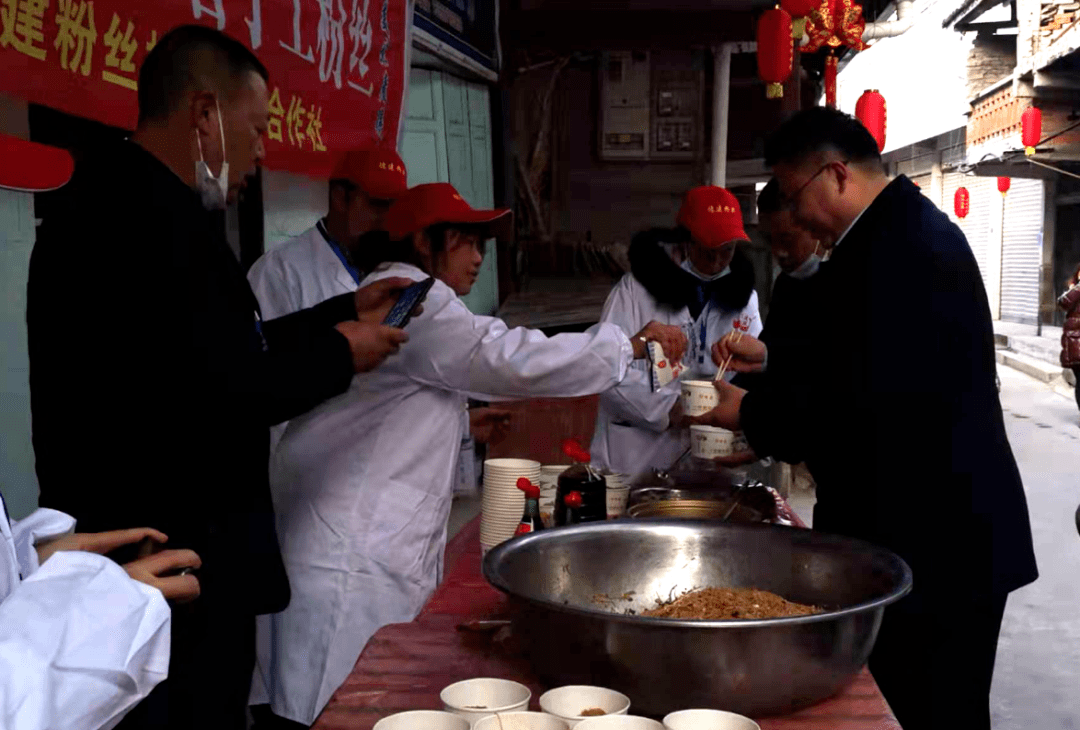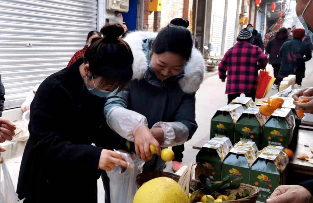 让人惊喜的是,射洪市音乐家协会的王老师也来为乡村振兴助兴,她亮开金嗓子,一曲《龙抬头》,唱亮满街,响彻山谷,赢得群众雷鸣般的掌声。我正听得如醉如痴,一群闹闹嚷嚷,吹吹打打的人群过来了,原来是表演的传统文化“车车灯”。“车幺妹”在轿里喜剧幽默的动作,风趣的说唱,让人忍俊不禁,开怀大笑,增添了许多年味喜气。来自《西部射洪》几位穿着古装汉服的姑娘,在李氏祠堂宽宽的街阳边,玩着游戏套圈。她们嬉戏打闹,婀娜多姿,犹似仙女下凡,来到这山野乡场,引来了群众的围观。在她们的旁边摊位前,人群攒动。原来这里摆有武安镇的特色农产品:有来自千家村“生态采摘园”的粑粑柑、绿壳鸡蛋、自养的蜂蜜、文武村的糖心柚、跑山鸡,有石河村“德建粉丝厂”生产的粉丝、粉条、欠粉,还有特色小吃“德建酸辣粉”。