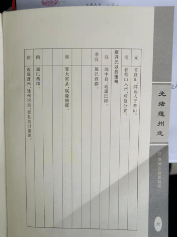 《光绪蓬州志》:梁,置大寅县,属隆城郡;唐改属蓬州,更县名曰蓬池