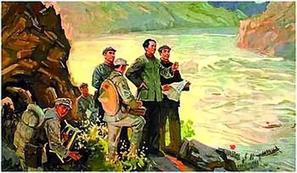 1935年5月3日至9日,7天7夜时间里,7条破船载运着3万红军,在四川省会理县皎平渡巧渡金沙江,摆脱了几十万国民党军队的围追堵截,取得了战略转移以来具有决定意义的胜利。毛主席写下“金沙水拍云崖暖”,抒发出愉悦的心情。