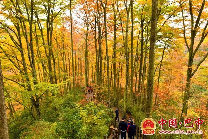 光雾山,被誉为“中国红叶第一山”,四时之美,以秋天为最,绵延百里的红叶色彩斑斓,蓝、绿、黄、橙、红呈梯次变幻。