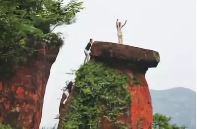 在犍为大兴乡云峰山,有一根天然石柱,约几十米高,顶部方形,恰似一枚面朝天的大红“印章”,这就是有名的“番天印”。传说当年孙悟空大闹天宫,玉皇大帝连滚带爬逃命,慌乱中玉玺落到这里,来个倒栽,于是形成了这个红色的“番天印”。