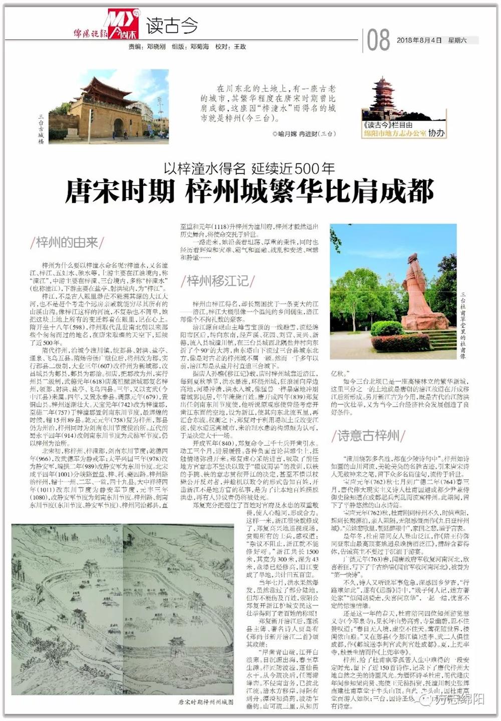 本文为《绵阳晚报》“读古今”专稿,原载2018年8月4日第8版,作者:三台县地方志办公室 喻月嫦 冉进财