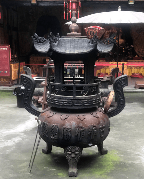 院子中央放置着一个大型香炉,香炉上镌刻着“古娘娘庙道观”的古体字样。