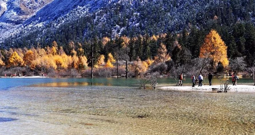 到龙王海时,大家迫不及待地下车,竞相一饱眼福。龙王海实则是一个湖泊,以及它上游的清泉湖、大雪塘等,可能是若干年前因地震形成的堰塞湖或因山水冲击而成的。