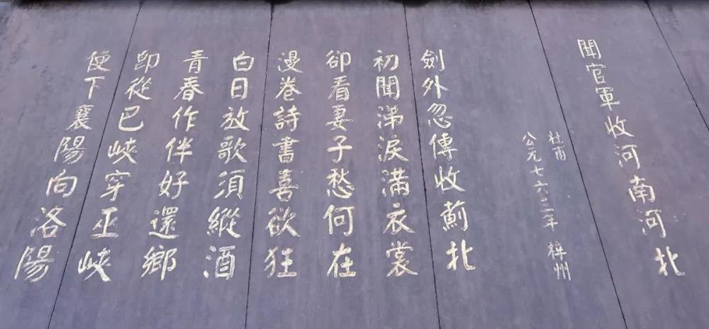 763年春天,杜甫作于梓州的著名诗歌《闻官军收河南河北》(潘认若摄于三台县杜甫草堂)