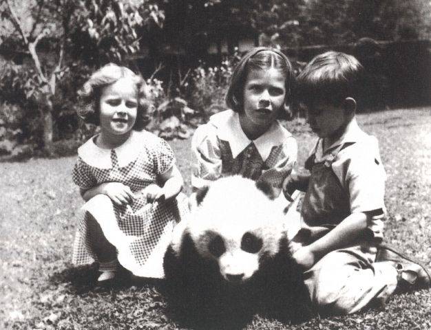 1938年,大熊猫“潘多拉”在华西协合大学内与孩子们嬉戏。