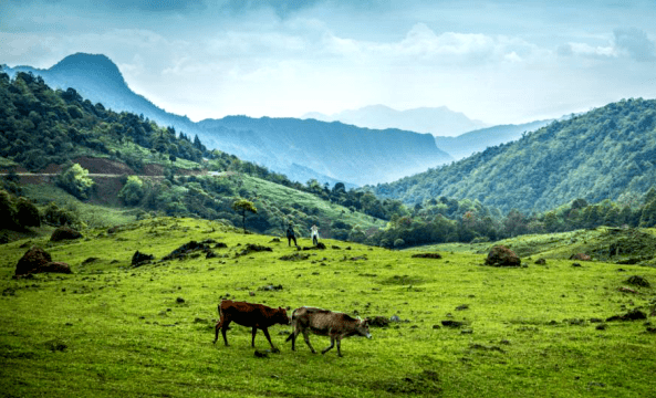 清新的空气,静谧的环境,大山深处放养着不少牛羊,还有一望无际的大草坪上,置身其中,无穷的风云尽收眼底。