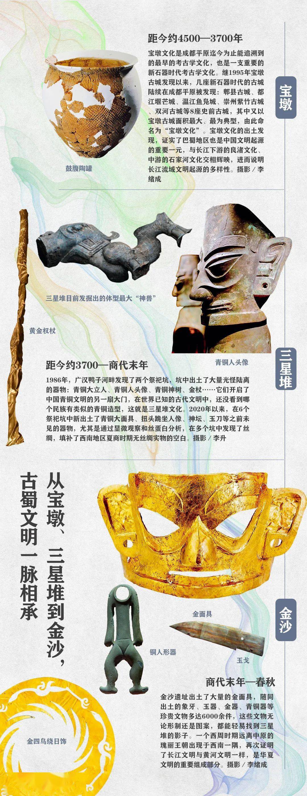 岷江巨大的冲积扇,宛若古蜀历史的扇面,率先退去洪水的两侧高地上,诞生了最早的文明曙光。