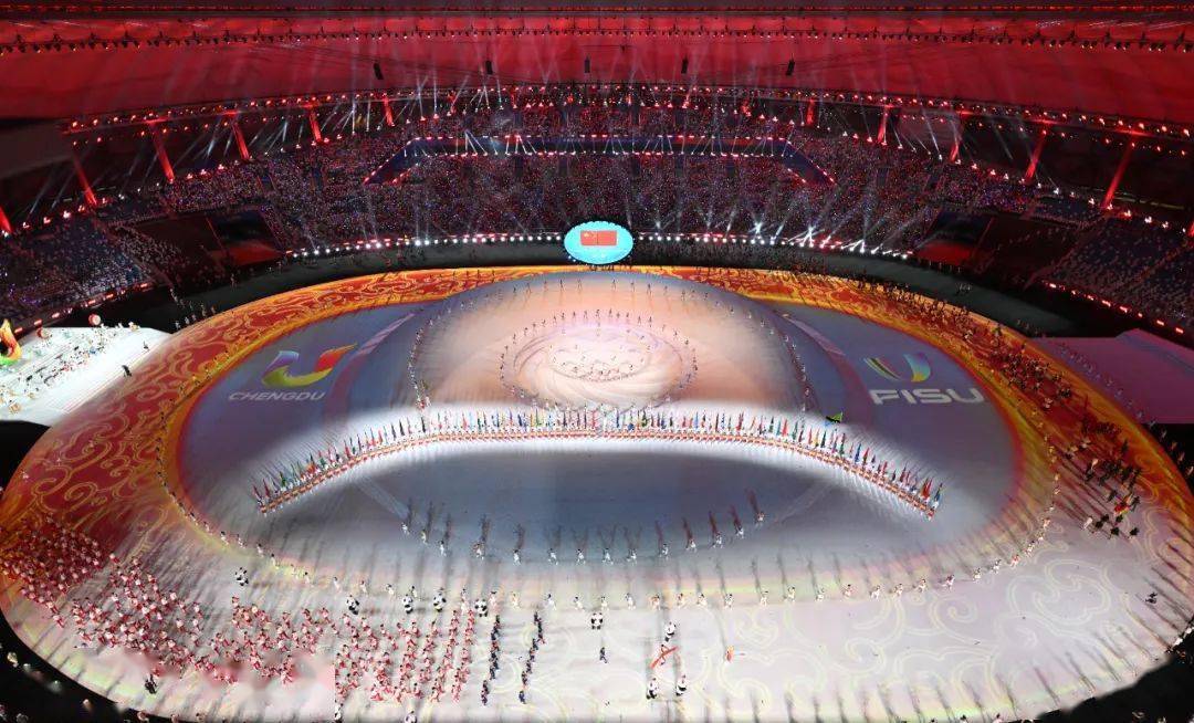 7月28日晚,成都第31届世界大学生夏季运动会隆重开幕。伴随着热情欢快的音乐,成都大运会开幕式运动员入场式正式开始,现场大屏幕中出现一位成都纺织姑娘,她正在用世界上最古老的蜀锦织机编织着丝线。紧接着,她手中的丝线逐渐变为了一条条彩色线路,在所有来蓉大学生所乘坐的飞机尾翼后紧紧跟随着。光影变幻中,这些多彩丝线从大屏幕上流淌到运动场的地上,并开始奋力向前“奔跑”,最终形成一条由蜀锦铺就的“锦绣之路”。
