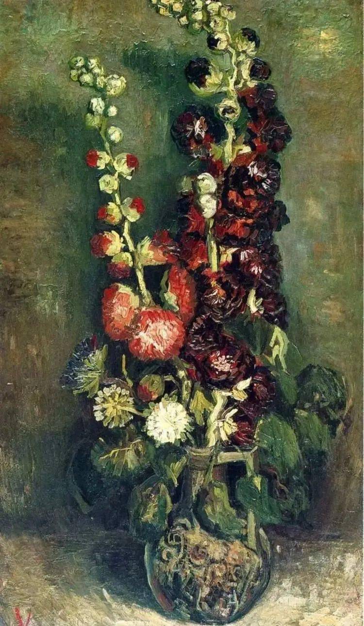 鲜为人知的是,在西方文艺复兴时期的画家笔下,蜀葵得到了大师浓墨重彩的彰显。比如德国伟大的艺术家丢勒(1471—1528年),他是欧洲文艺复兴时期代表画家,他于1503年绘制了一幅名为Madonna of the Animals作品,画中就盛放着四朵鲜艳的红色蜀葵。除此之外,提香、鲁本斯、布歇、布格罗、德拉克洛瓦、莱顿、柯罗、毕沙罗、莫奈、雷诺阿、塞尚、梵高、列宾等等西方著名画家们画笔下,蜀葵不断得到一种全新的赋形……