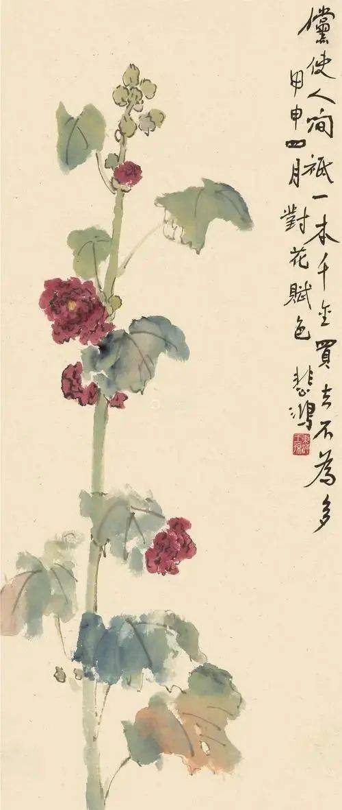 徐悲鸿 1944年作 《蜀葵》设色纸本