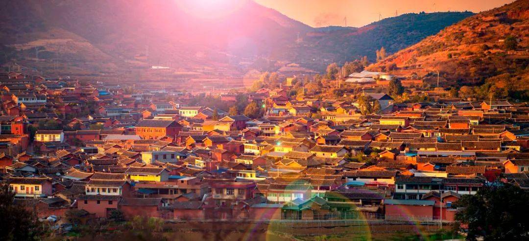 下了大巴车,我们一行数十人径直向村子走去。很快,一片奇异的建筑呈现在我眼前,家家户户都是红色外墙,错落有致,整个村落犹如穿着红装的美人,惊艳极了。