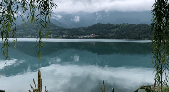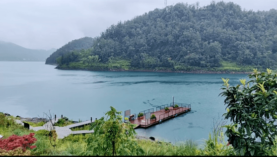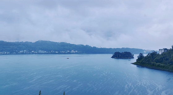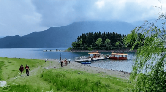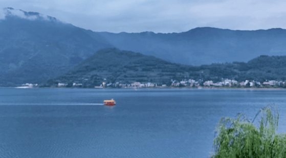 马湖东南处山脉像是一只天鹅空降湖中,直扑水面,远观让人觉得倍感有趣。