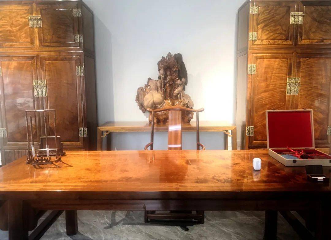 芦山小叶桢楠水波纹。“湿云堕地水波立,两山不辨青芙蓉。”水波纹,如春风吹拂着静谧的水面,层层涟漪,荡漾扩散,动静相宜,灵动自然,加之金光色泽,更加妩媚动人。