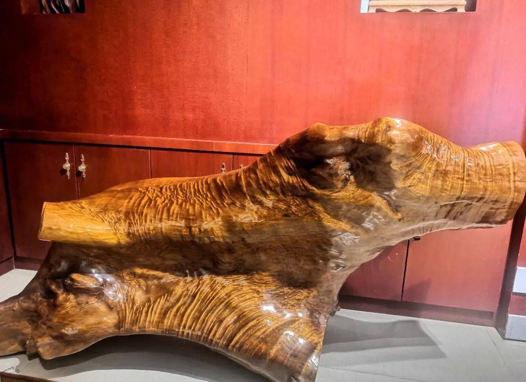 芦山小叶桢楠龙鳞纹。“龙鳞漾嶰谷,凤翅拂涟漪。”龙鳞纹,树瘤的一种表现形式,因木材结构发生病变所致,纹理好似鳞片一般,层叠交错。在阳光照射下,金光四溅,犹如金龙抖甲一般,从眼前飞掠而过,震撼人心。