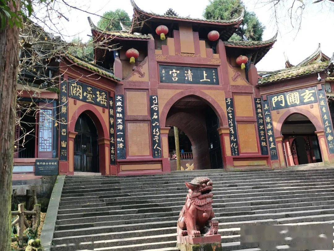 经天然图画、山荫亭、五洞天、天师洞来到上清宫,一路凉风习习,虽然多少也有些劳累,但青山叠翠,路途中不断与异域之人擦肩而过,有时还打趣来两句“OK”,不觉神清气爽。上清宫始建于晋代,现存庙宇为清朝同治年间所建,上有“天下第五名山”“青城第一峰”等摩崖石刻;宫门顶端的“上清宫”三字由蒋中正题写。我走进宫内,拜谒了道教始祖李老君,站在《道德经》五千言木刻前面,仔细阅读后,再欣赏过麻姑池、鸳鸯井等传说遗迹。当代国画大师张大千先生曾在上清宫居住了四年之久,在此诞生的作品,也被世人刻在了石头上。