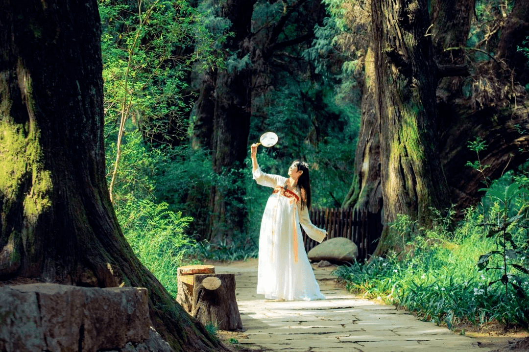 当您轻轻漫步于翠云廊古蜀道蜿蜒的石板路上,侧耳倾听清风拂其树干发出的美妙声音之时;当您静静伫立于翠云廊古蜀道的参天古树下,细细品味其松柏木的清香萦绕自己鼻尖生发出的那种沁人心扉的独特清香之时;当您无意间偶然抬头举目于翠云廊古蜀道上空那疏疏密密织成的绿色幕帘,从中感受缕缕穿透树荫之爽畅阳光带给您欢快之时……您既会瞬间感到自己似乎已骤添了些许才气和灵气,亦会对“绿水青山就是金山银山”有了更多感慨和感悟!