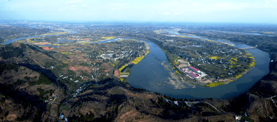 江水悠悠绿如蓝。站在淮州高处,俯视沱江,江水似练;远眺云顶山,“状若城垣”。在古城遗址不足10里的江岸,2021年5月,成都淮州机场拔地而起,为千里沱江描绘出一幅引领时尚潮流的山水画卷。
