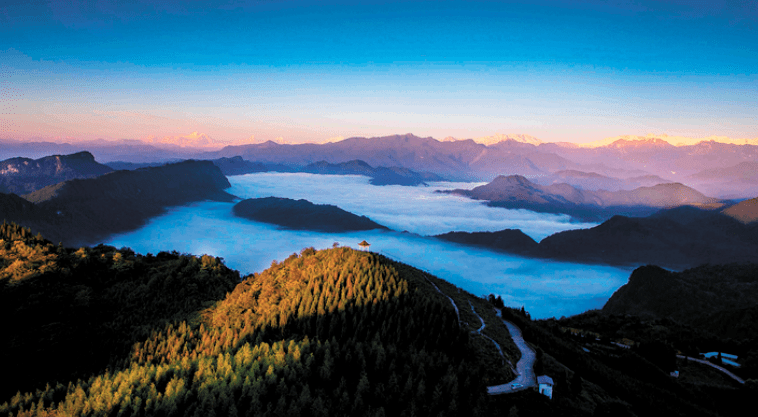 在四川,想见到日出很容易,走出盆地低洼之地基本可见;想见到云海也不难,登上海拔3000米左右的高峰便很容易看到。但在看日出云海的同时,还能一睹蜀山之王贡嘎山的风采,另外距离成都还很近,那么芦山射箭坪便是最佳观景平台了。此处海拔仅1500米到1700米,却能看到与牛背山媲美的绝美风景。