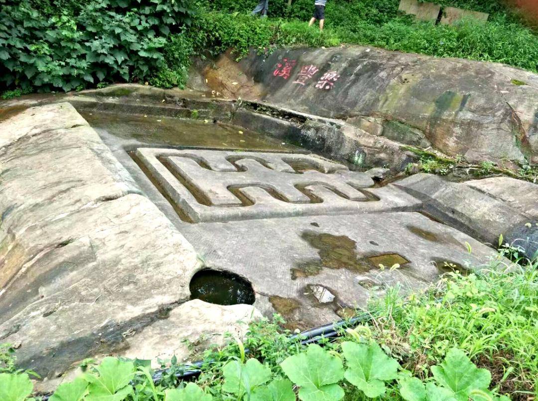 我们来到龙贯山下的流杯池。处于山间小溪中间平台岩体上的流杯池,长约8米,宽5米多。远远地看见中间凸出“主”字形雕刻,四周小水沟环绕。池东侧出水口有一酒瓮石坑。流杯池左右两侧原盖有亭子或棚,已损毁,现可见其遗迹。流杯池是取晋代著名书法家王羲之《兰亭集序》中“曲水流觞”之义而得名的。将一只盛满酒的杯子放进流动着的曲水池中,杯随水去,酒杯停在谁的面前,就该谁喝酒,并在酒杯流动的规定时间内,或吟诗,或联对,或作歌,若吟唱不出,就以酒为罚,古时文人常以此娱乐。石刻题记位于流杯池西侧岩壁上,其年代为清乾隆六十年(1795)。阴刻楷书“乐丰溪”三个大字,落款为“乾隆乙卯胡国忠书”,字迹苍劲流畅。那时文人以诗会友,以酒助兴,甚是高雅。我们一行的几个男士盘腿坐在流杯池的石头上打禅,旁边两个人用矿泉水当酒,边饮边诵诗,仿古文人的样子。
