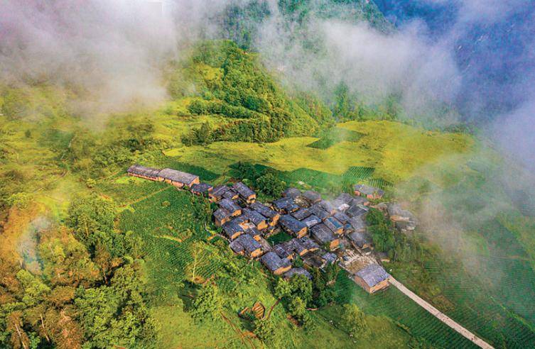 山间村落起流岚,云端藏堡美如画。夏日的一场夜雨过后,石棉县蟹螺藏族乡的几个传统村落云雾缭绕,宛若仙境。