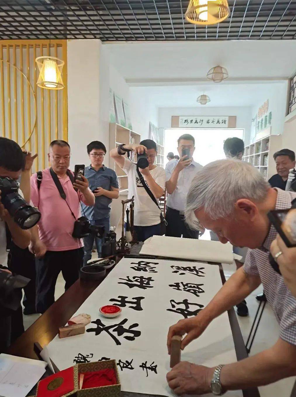 2022年6月26日,原东海舰队副政委、第八届全国人大代表魏伯良将军在泸州纳溪题写“纳溪梅岭出好茶”(刘玉莲 摄,图源:四川方志图库)