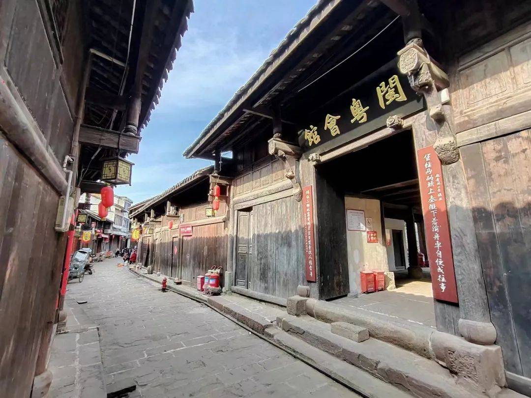 一行人沿着一条平坦的水泥路进到镇里,细窄狭长的石板路两边,建有不少雕刻着精美图案的木质结构建筑。据资料介绍,这多为清代及民国时期的民居老屋。来到古镇的第一印象,就让人感受到这里浓郁的人文自然景观、厚实的历史文化底蕴。
