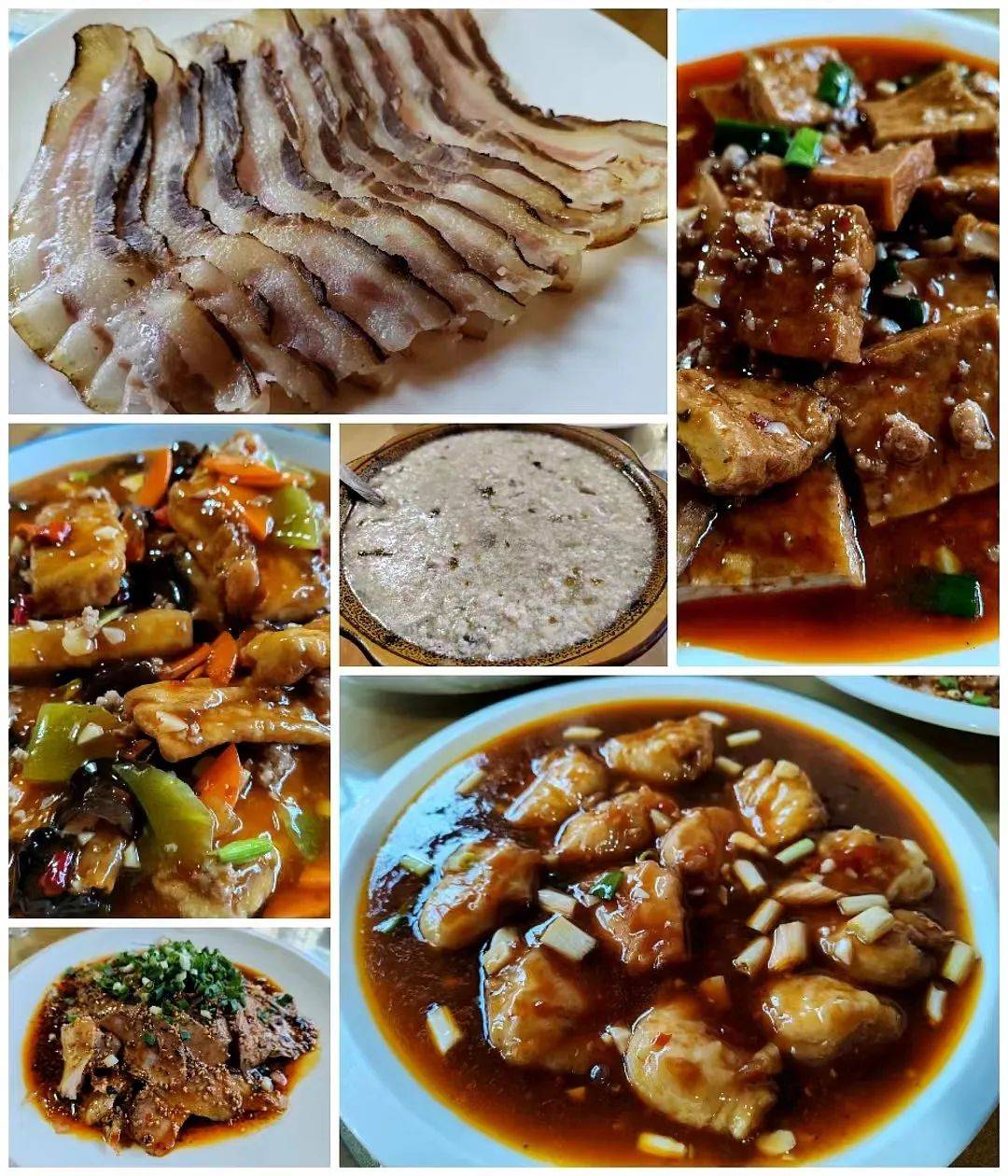 菜一道道端了上来,大家举箸饕餮,大快朵颐,连声赞叹这豆腐宴确实美味,名不虚传。其中有一道形似李庄白肉的非豆腐菜品“大刀腊肉”,更是肥而不腻,香醇爽口,只可惜每人仅能吃到一片,不由得直呼口福难饱,太不过瘾。