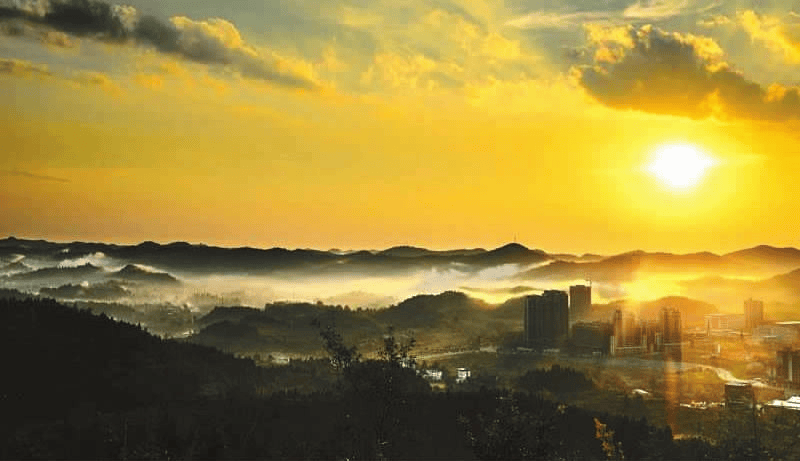 化凤山,西充县晋城镇东北部九条渠山脉尽头的一部分。每当晨曦初露、朝阳升起,化凤山就沐浴在万道金光之中,似梦似幻,宛如仙境,西充人将它比作“西奈日出”,这就是著名的“化凤朝阳”。
