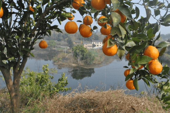 有“乌龟”、有水,就有了生气,也有了风景。登高横观麻柳湖,一个个小山头上,披着果树、庄稼、树丛的外套陪衬着。湖水碧绿无声,静静地,青青翠翠便构成了独特风景,微风吹过时会泛起细细波纹,为人们送去清新的气息。麻柳湖周边的水果,春夏秋冬都飘着诱人的清香。一旦大雪纷飞,树上的脐、春见等果子在白雪下透着鲜浓橙色,一树树一行行果实缀满枝头,叶绿果黄,鲜艳逗人,忍不住要去采摘品尝。