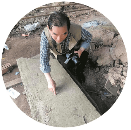 作者在上皇观辨识碑上字迹