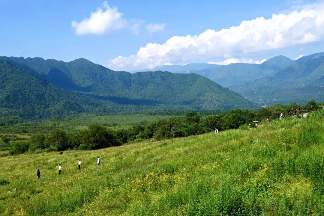 群山、草甸与游人