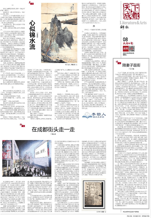 初到成都是1985年。那年夏天,我考上四川师范大学,从重庆菜园坝车站坐火车来成都。第一次走进川西坝子,辽阔而深远的平原,对在重庆山区长大的我而言,既感新奇又十分激动,真切地看到一个大都市的千年传奇,真切地感受到成都这座古城的无限魅力。自古成渝一家亲。成渝地区文化可谓同根同源、长久交融,有着充分的历史传承和区域间的交流,以及共存的文化认同。但在历史、人文、风土人情等方面又保持了各自的特质,如成都人“多斑彩文章,尚滋味,好辛香,君子精敏,小人鬼黠”,重庆人“其民质直好义,士风敦厚,有先民之流”“无造次辨丽之气”。