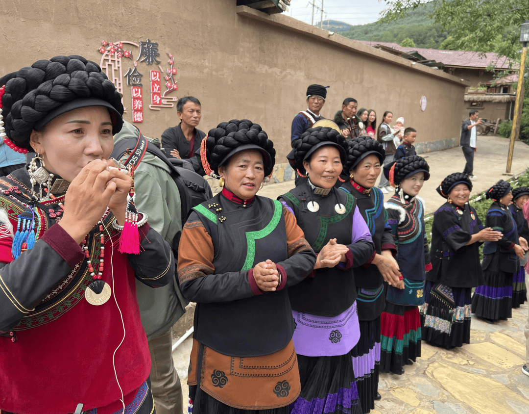 在后面几天的采风中,我不断地见到生活中、舞台视频中的彝族民族服装,非常着迷。这种服饰,让我想到一轮红日从东方升起、银盘一样的皓月当空普照大地,所有的美都是阳刚的、光明的、朝气蓬勃的,让人感受到青春的无限美好。