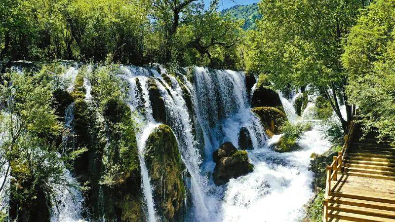 地震后恢复的九寨沟诺日朗瀑布(图源:四川日报)