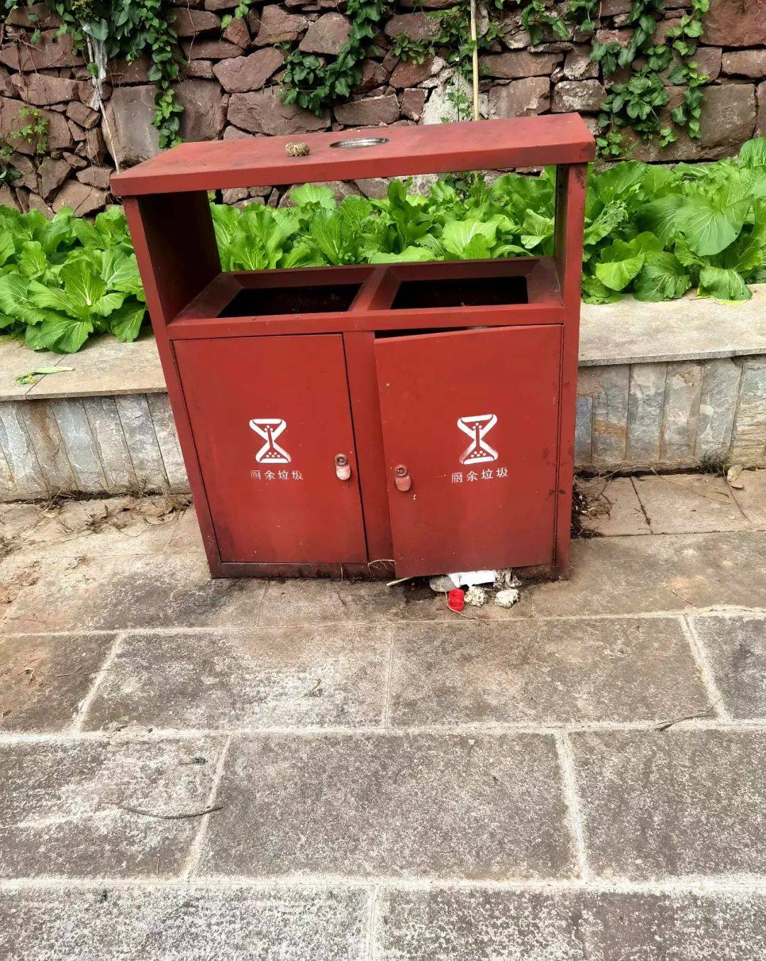前几年,一条水泥公路从山脚沿山沟边直修到山顶。村中公路边上,住户稍集中的地方,都安上了垃圾桶。村上专门召开村民大会,要求村民将垃圾分类,放在垃圾桶内。
